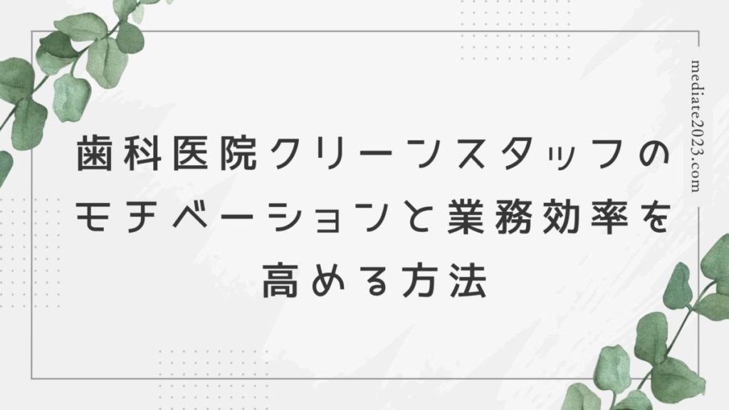 歯科医院のクリーンスタッフは、院内の清掃や滅菌、洗濯など、患者さんが安心して治療を受けられるよう、清潔を保つための重要な役割を担っています。しかし、クリーンスタッフの業務は、単純作業の繰り返しが多く、モチベーションが維持できないという声も聞かれます。