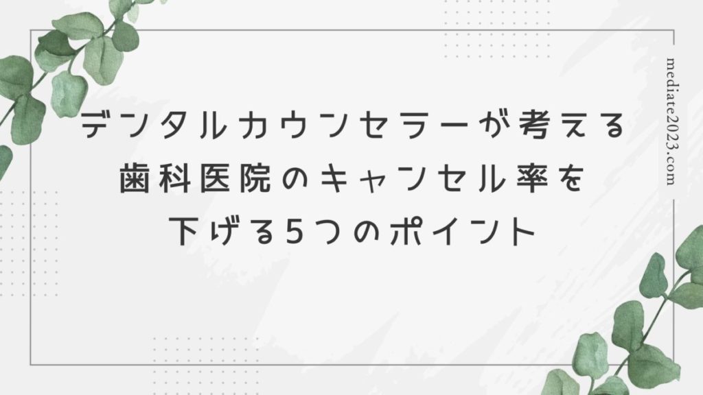 私も、歯科医院でカウンセラーとして働く中で、キャンセル率の改善に悩む院長の方を多く見てきました。